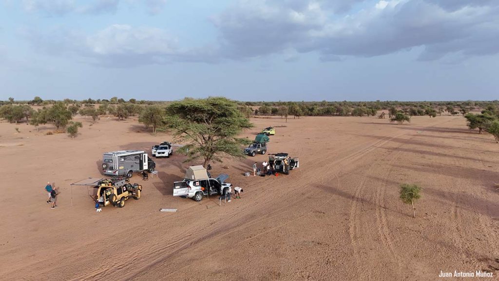 Acampamos en medio de una zona arbustiva rodeados de algunos campamentos peul. Según ellos, las lluvias ya están llegando, por lo que nos previenen de la situación en la que nos encontraríamos en caso de que nos pille en medio de alguna pista del Ferlo.