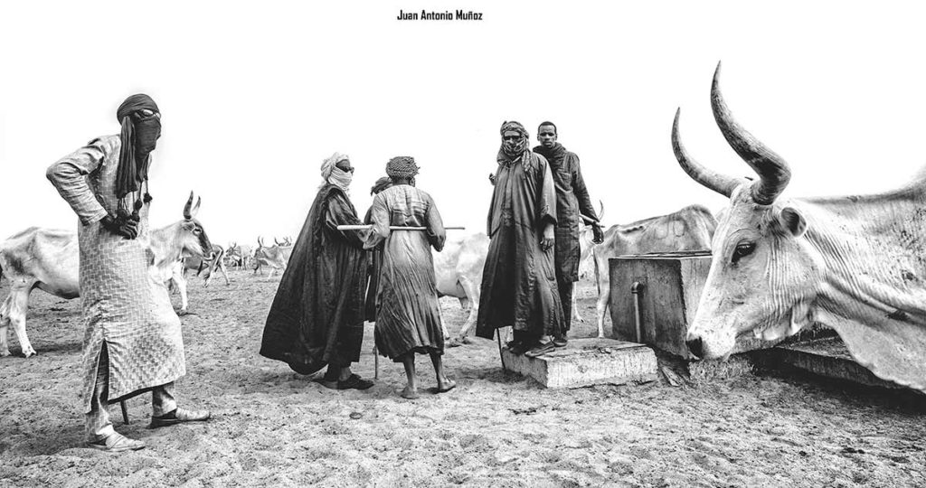 Los pastores peul, también conocidos como fulani, están repartidos por toda la franja del Sahel. Son un pueblo que se considera libre, de ahí su constante cambio de lugar en busca de pasto para sus animales. En los últimos años, la perforación de grandes pozos con torres de agua, ha servido para que muchos se sedentaricen y dejen de desplazarse de un lado hacia otro.