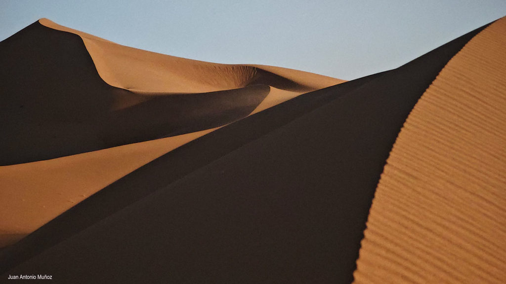 El Sáhara, el mayor desierto del planeta, nos acoge para permitir que nuestro espíritu se recree bajo un mundo de fantasía en el que luces, sombras y volúmenes, crean auténticas y sorprendentes obras de arte.