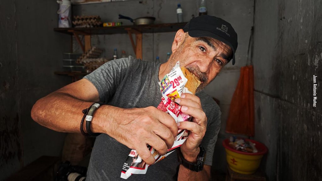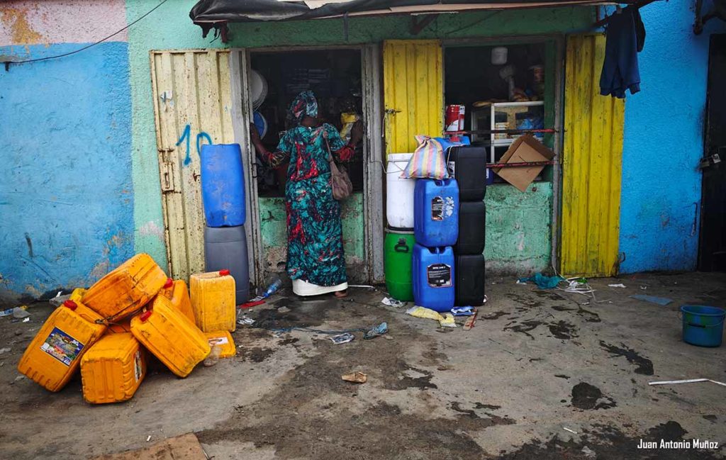 Junto a las barcas, los marineros y sus familias se han organizado en una especie de colonia de la que salen en raras ocasiones. Del exterior les llega la fruta, verdura… y todo lo necesario para cubrir sus necesidades. Incluso el combustible para las embarcaciones lo encuentran en las pequeñas tiendas almacenado en bidones de plástico.